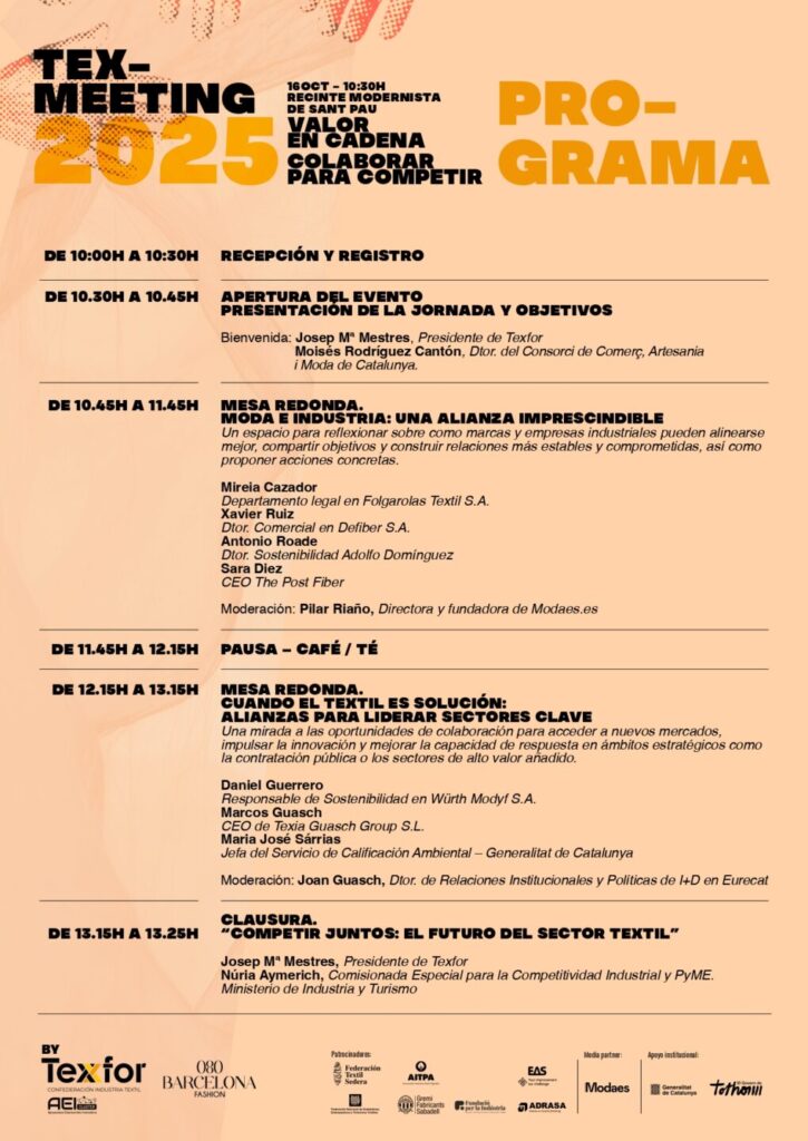TEX-MEETING 2025: Valor en cadena, col·laborar per competir Barcelona, 16 de octubre de 2025 – Recinto Modernista de Sant Pau La indústria tèxtil es troba en un punt clau per impulsar el seu creixement i enfortir la seva competitivitat: la col·laboració entre tots els actors de la cadena de valor. Amb aquesta visió, Texfor – Confederació de la Indústria Tèxtil …